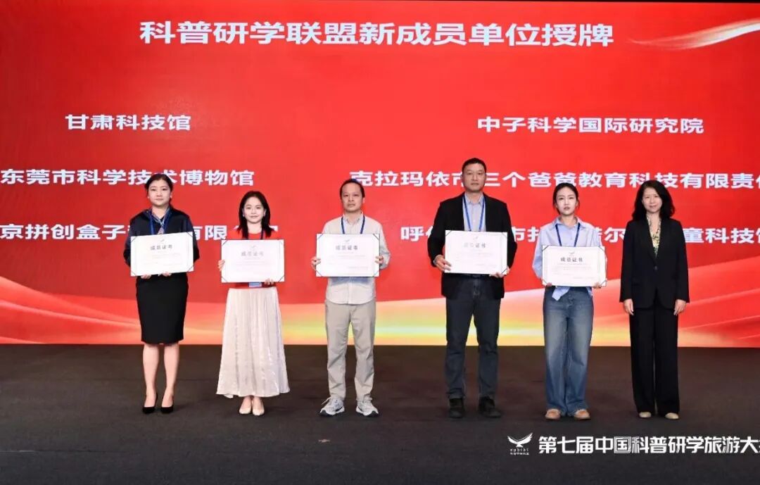 大会为新加入联盟的甘肃科技馆、东莞市科学技术博物馆等5家成员单位和7位科普研学指导专家、导师颁发证书。